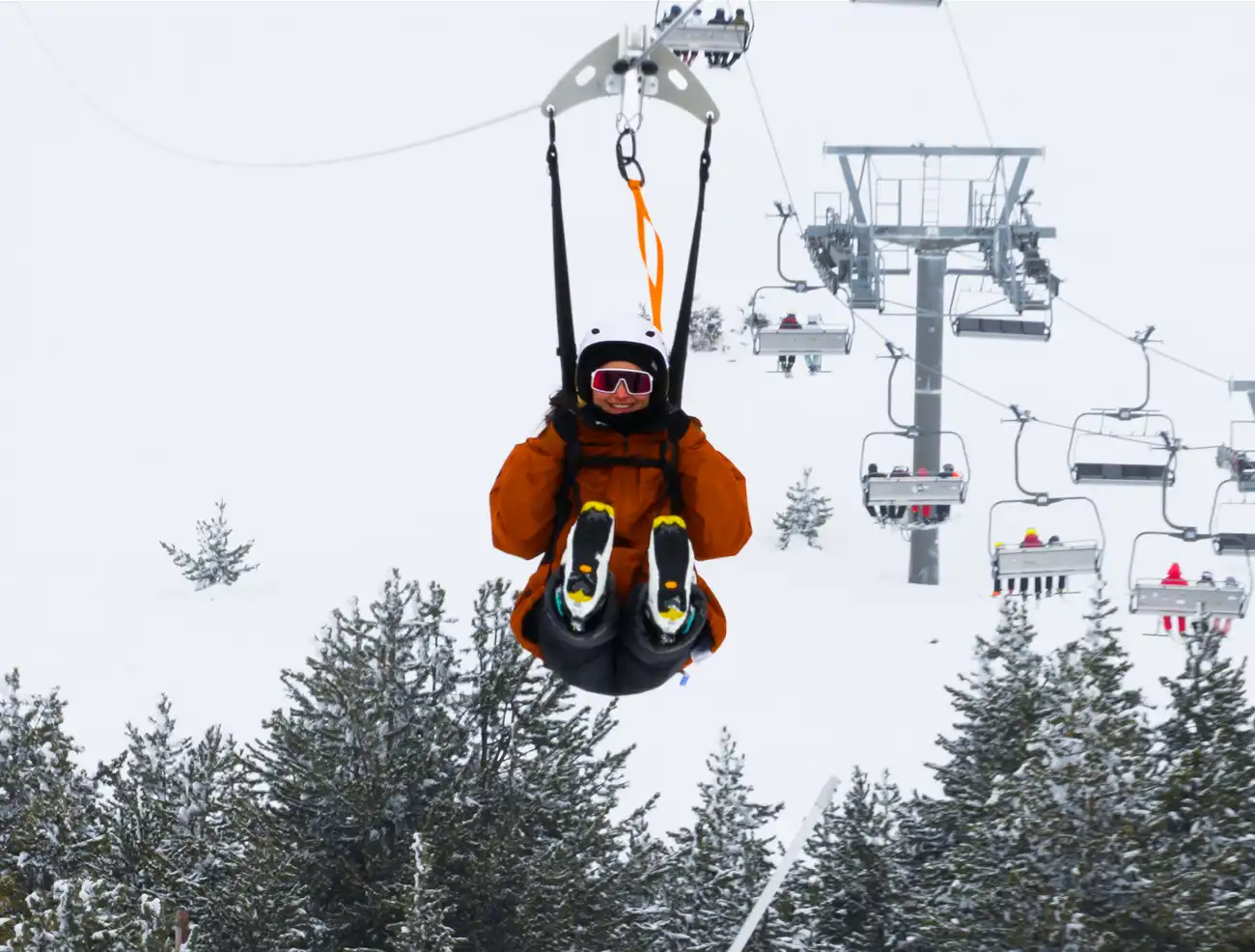 Enlaira't al cor dels Pirineus amb la nostra nova atracció aèria situada al sector de la Calma: un doble vol gegantí que promet un vol irreversible entre l'un i l'altre!