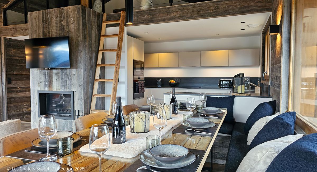 El xalet Ananta us oferirà una bonica sala d'estar amb una sala d'estar amb llar de foc i un menjador que s'obre a una gran cuina. Des de l'habitació accedireu a la vostra terrassa orientada al sud amb vistes al circ de Cambre d'Aze, també hi podreu accedir des de l'exterior (terrassa a 2 vessants).